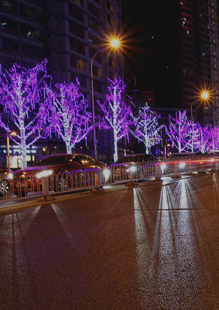 城市裝飾理念不斷加強(qiáng),亮化照明已經(jīng)向道路燈光系統(tǒng)演化,要求燈桿、燈具、光源具有多樣化和藝術(shù)化的特點,行道樹采用投光燈照亮或用滿天星裝點樹冠,有的商業(yè)街道用等距離拱形燈光帶組成了燈光長廊。